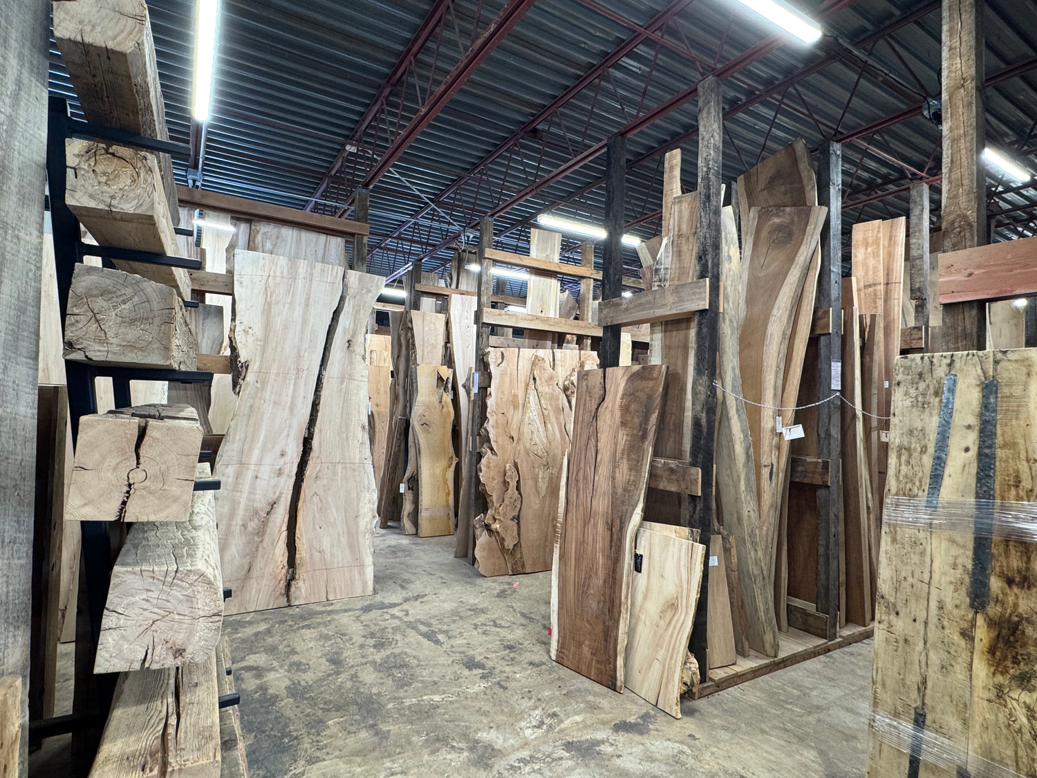 Our showroom is always open to the public, welcoming homeowners, designers, builders, and craftsmen alike. Explore our live edge slabs in person, compare species, and get expert guidance from our team.